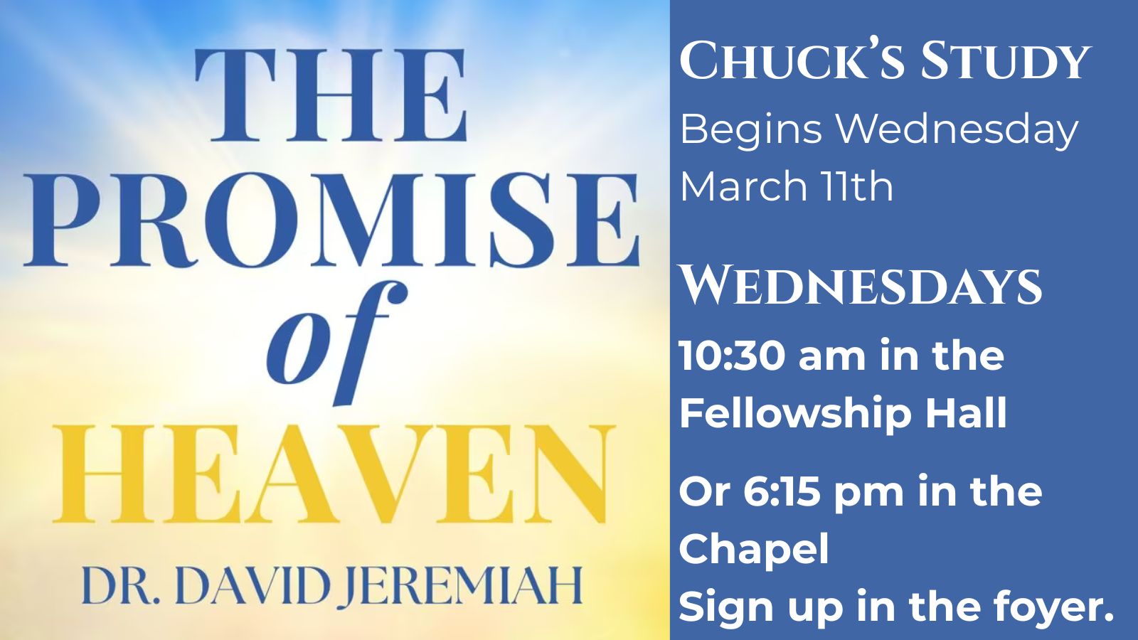 6:15 pm - Captured By Grace, Study with Chuck Trammel